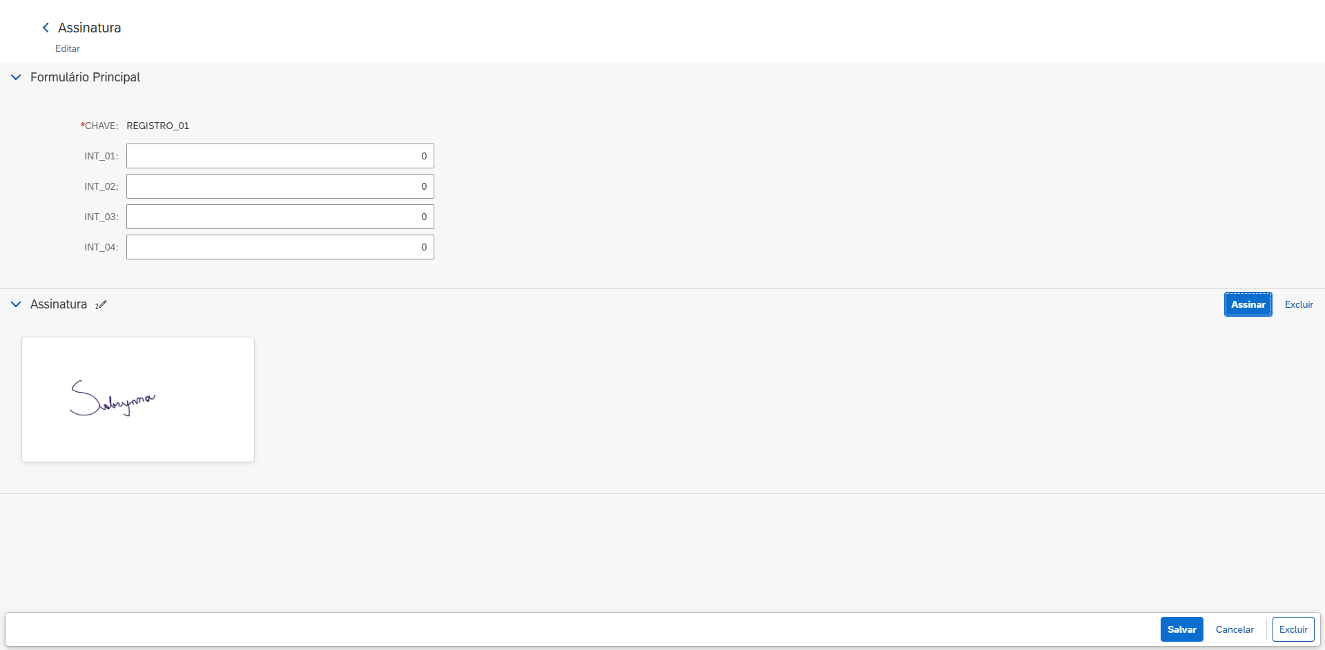 Para que a assinatura digital seja corretamente exibida na aplicação, é necessário configurar um PROCESSO. Esse processo é responsável por carregar e exibir as assinaturas registradas. Utilizando o mesmo campo chave e o mesmo processo, uma mesma assinatura pode ser visualizada em diferentes aplicações.