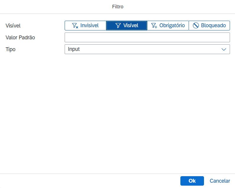 Bloqueado – o valor do filtro é fixo e não pode ser alterado pelo usuário.