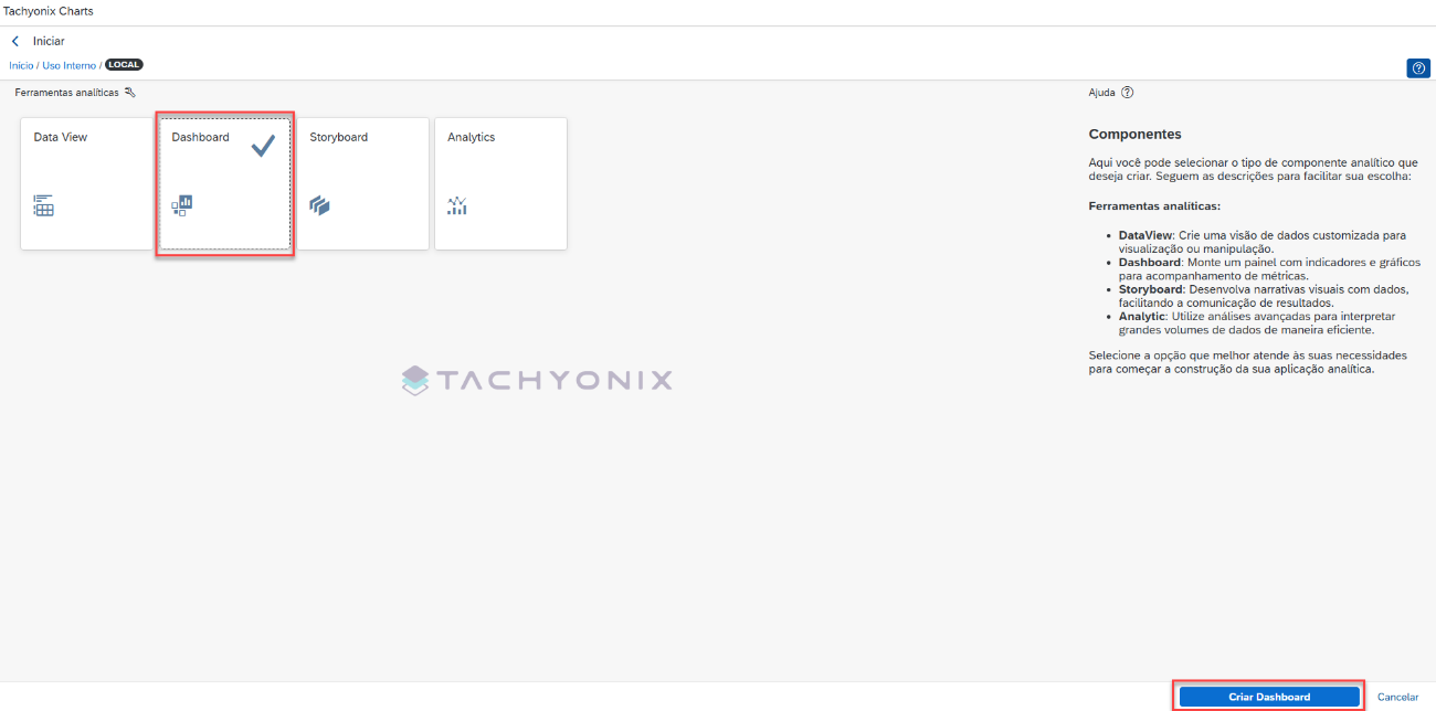 Em seguida selecione o tipo de ferramenta e clique em “Criar Dashboard”