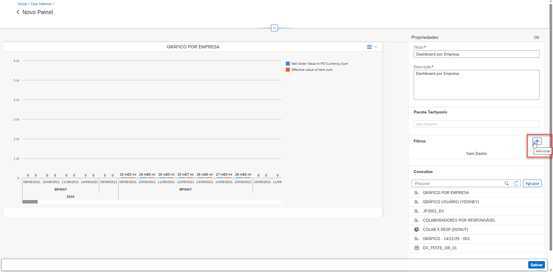 Clique em “Salvar” e o dashboard será criado