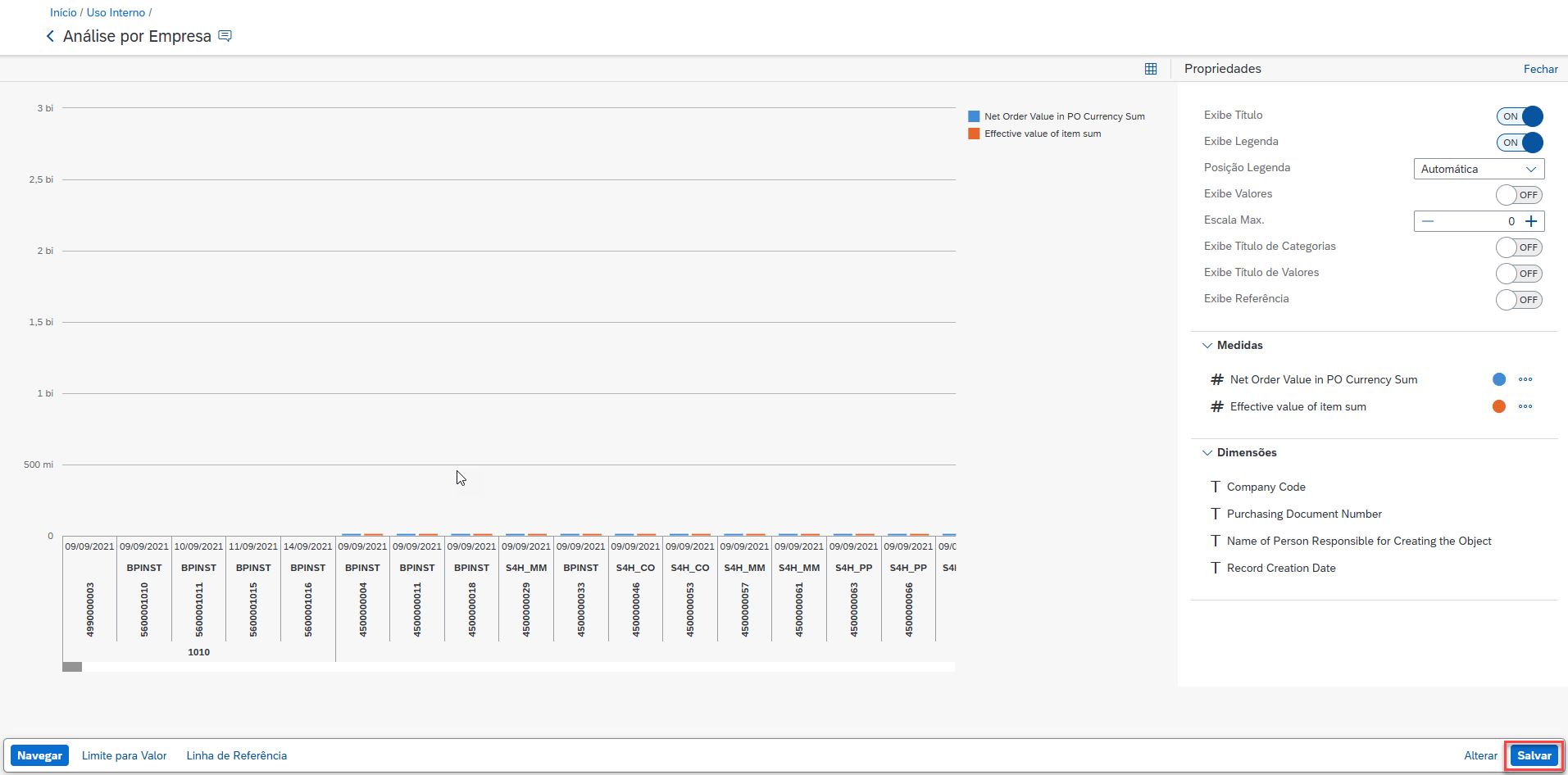 Nesse exemplo usaremos um gráfico do Dashboard analítico para demostrar, mas os mesmos passos também podem ser realizados no DataView.