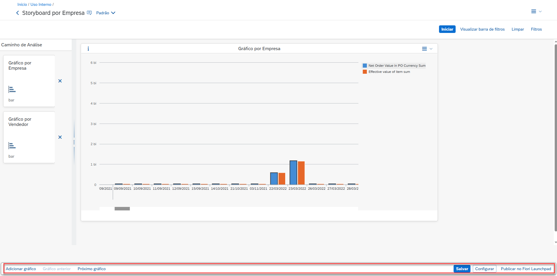 A barra de tarefas no rodapé da tela é utilizada para ações sobre o storyboard, e também seleção dos gráficos que serão exibidos