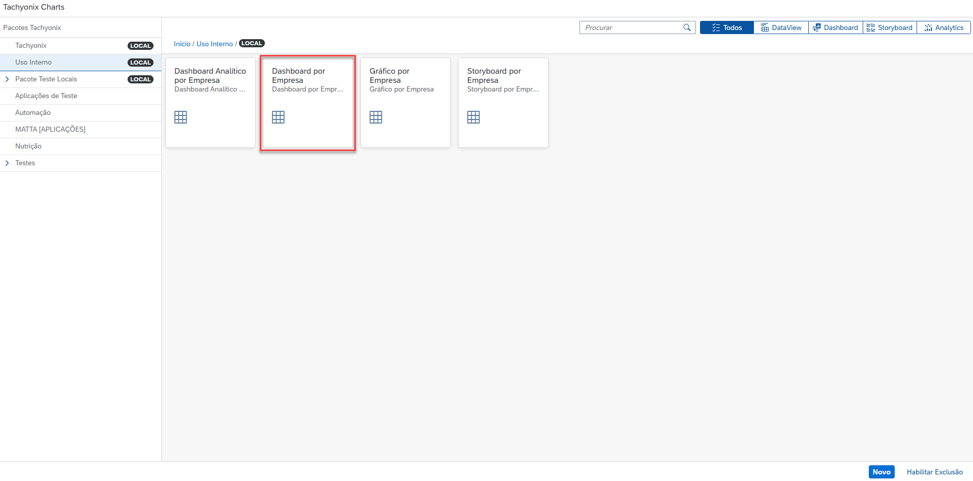 Selecione o pacote Tachyonix e clique no dashboard que deseja adicionar o gráfico