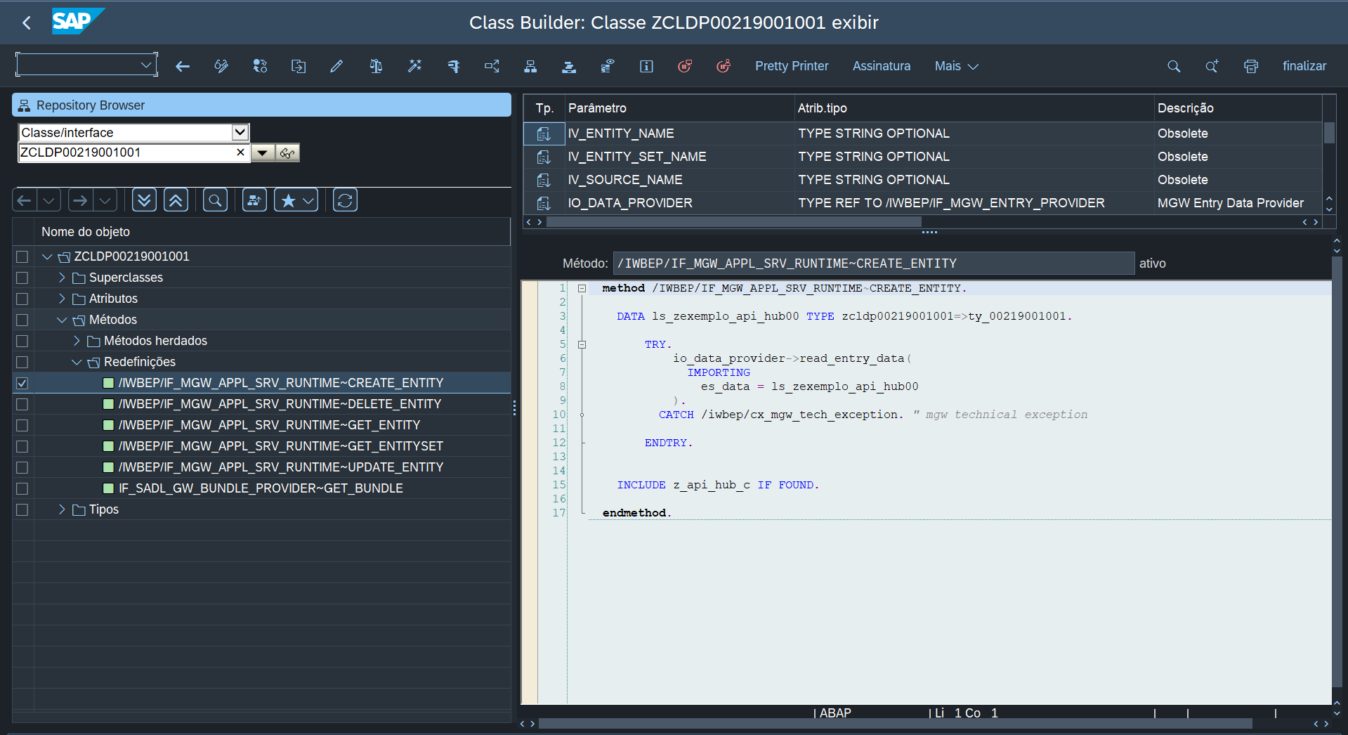 Após salvar, o Builder criará automaticamente os objetos correspondentes no SAP (classes e includes).