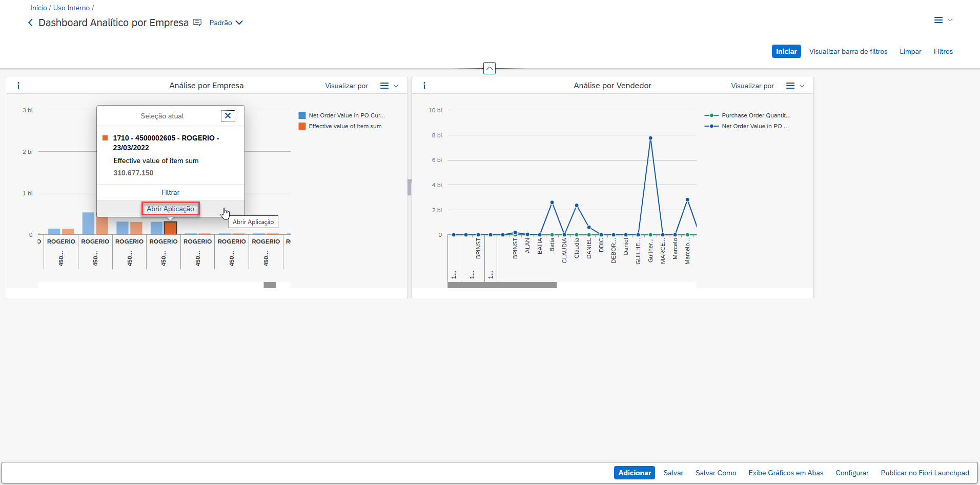 Voltando ao dashboard, clique sobre o gráfico onde foi criada a navegação e selecione a opção “Abrir Aplicação”