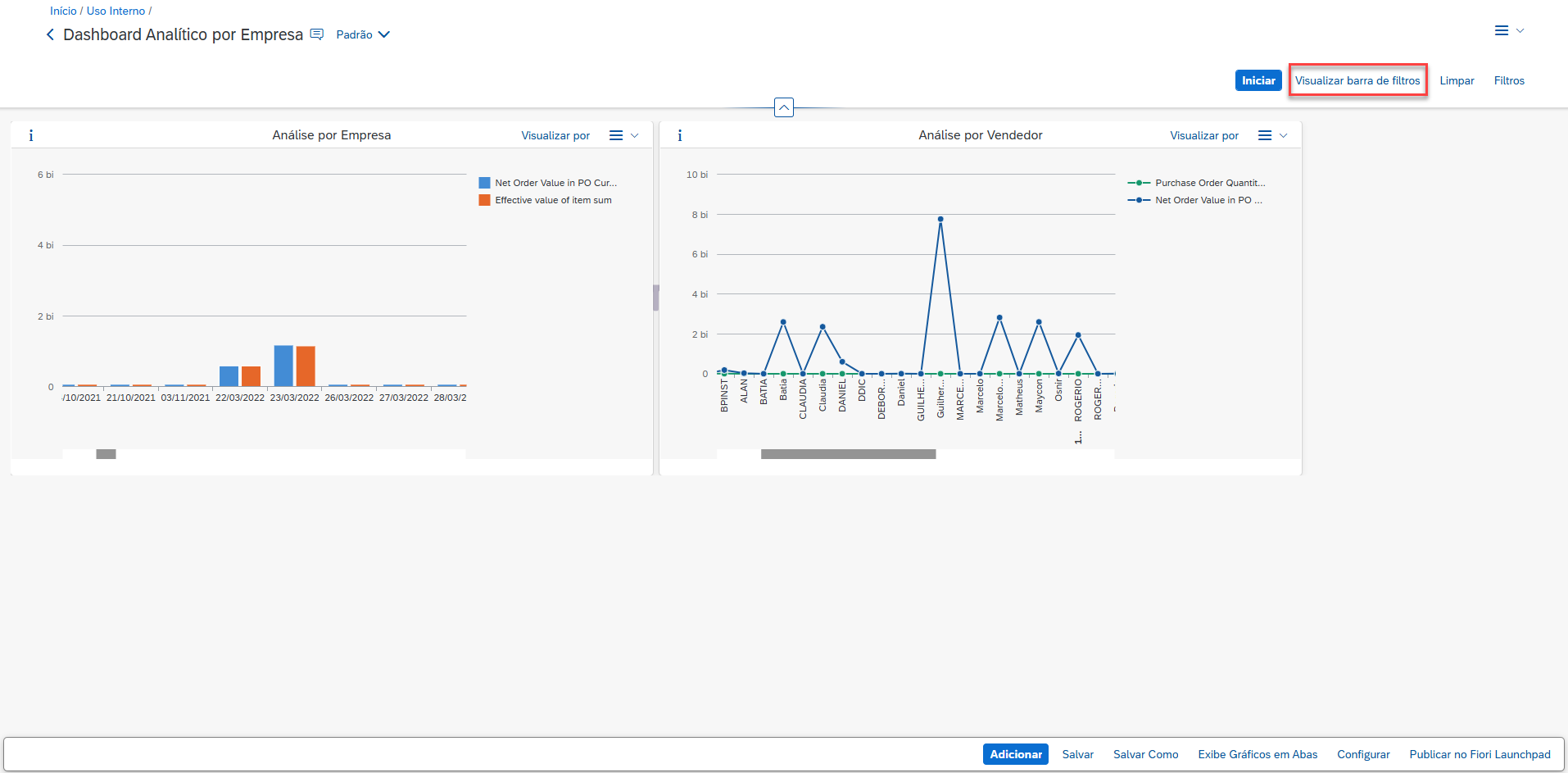 O dashboard será exibido, então clique em “Visualizar barra de filtros”