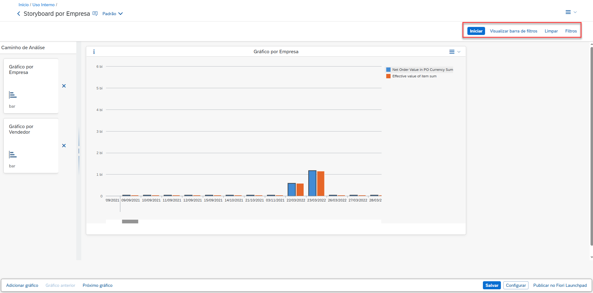 A barra superior é utilizada para manipulação dos filtros. Exibição, definição, execução e limpeza dos mesmos