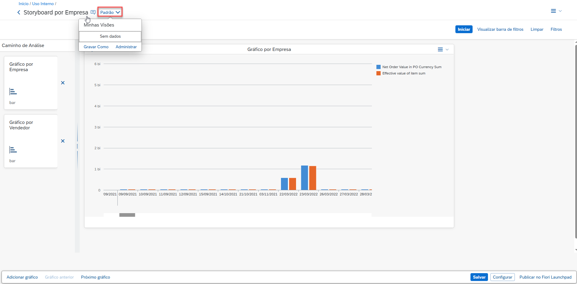 No botão “Padrão”, é possível criar variantes utilizando os filtros para explorar melhor os dados